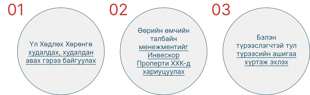 ОФФИСЫН ТАЛБАЙД ХӨРӨНГӨ ОРУУЛЖ, ӨМЧЛӨГЧ БОЛОХ ДАРААЛАЛ: